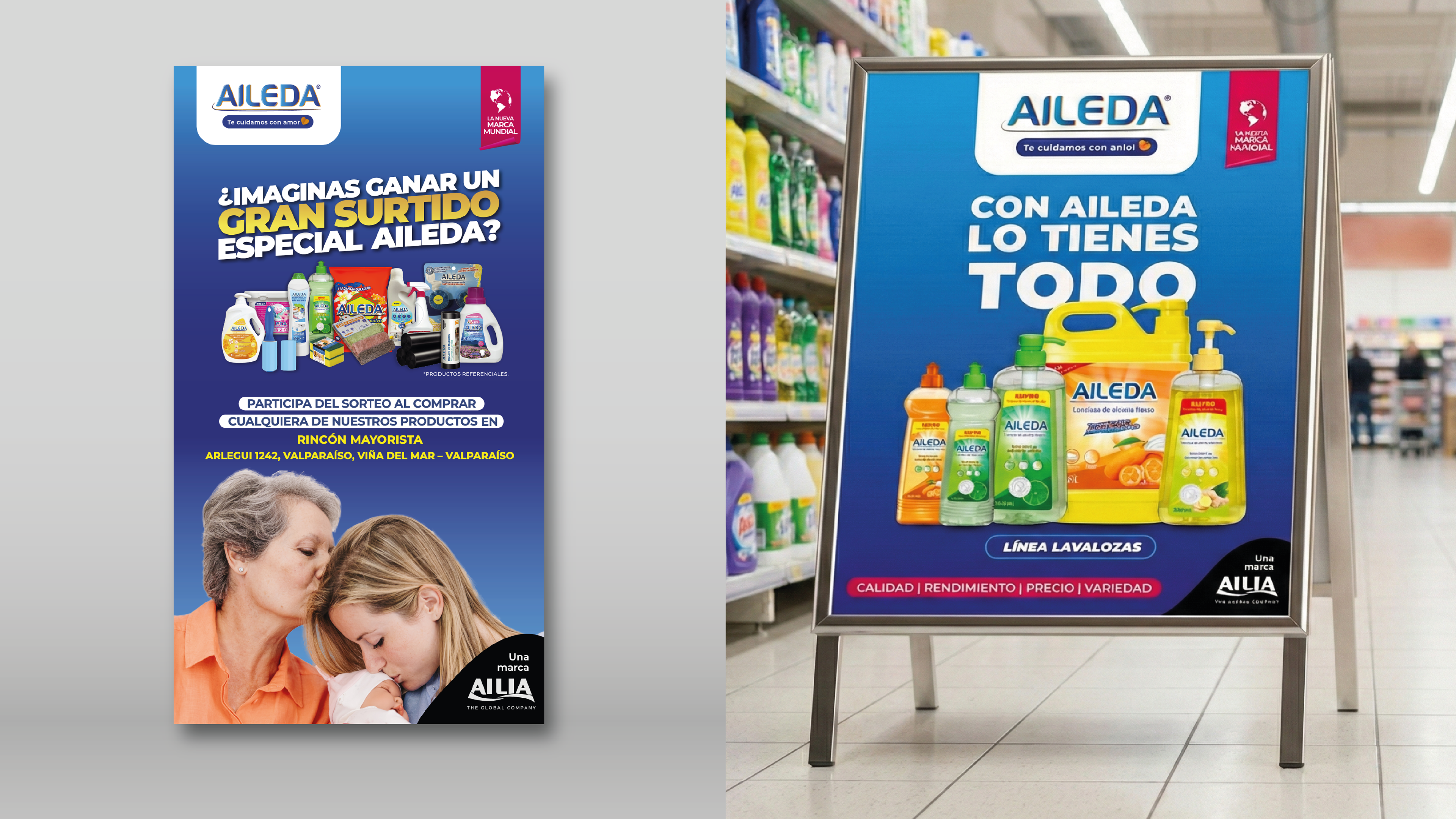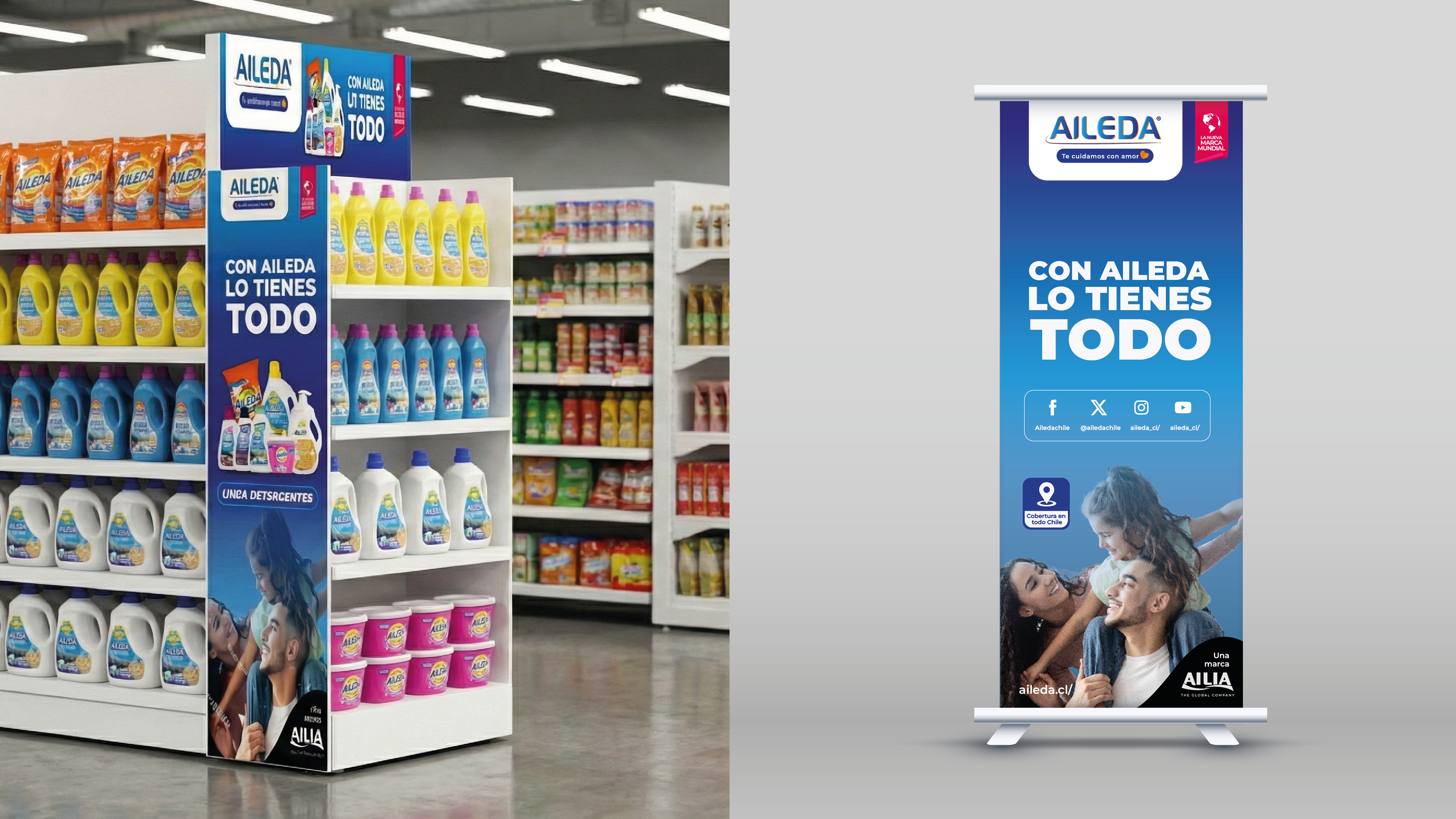 A través de la agencia Markmedia (Chile), gestioné la identidad visual de Aileda en múltiples puntos de contacto. Desde el detalle minucioso de sus packagings y etiquetas, hasta la escala de su gráfica vehicular, el objetivo fue construir una imagen de marca unificada. El proyecto incluyó además el diseño de material POP, folletería y la estrategia visual para sus redes sociales, asegurando una comunicación funcional en cada soporte.