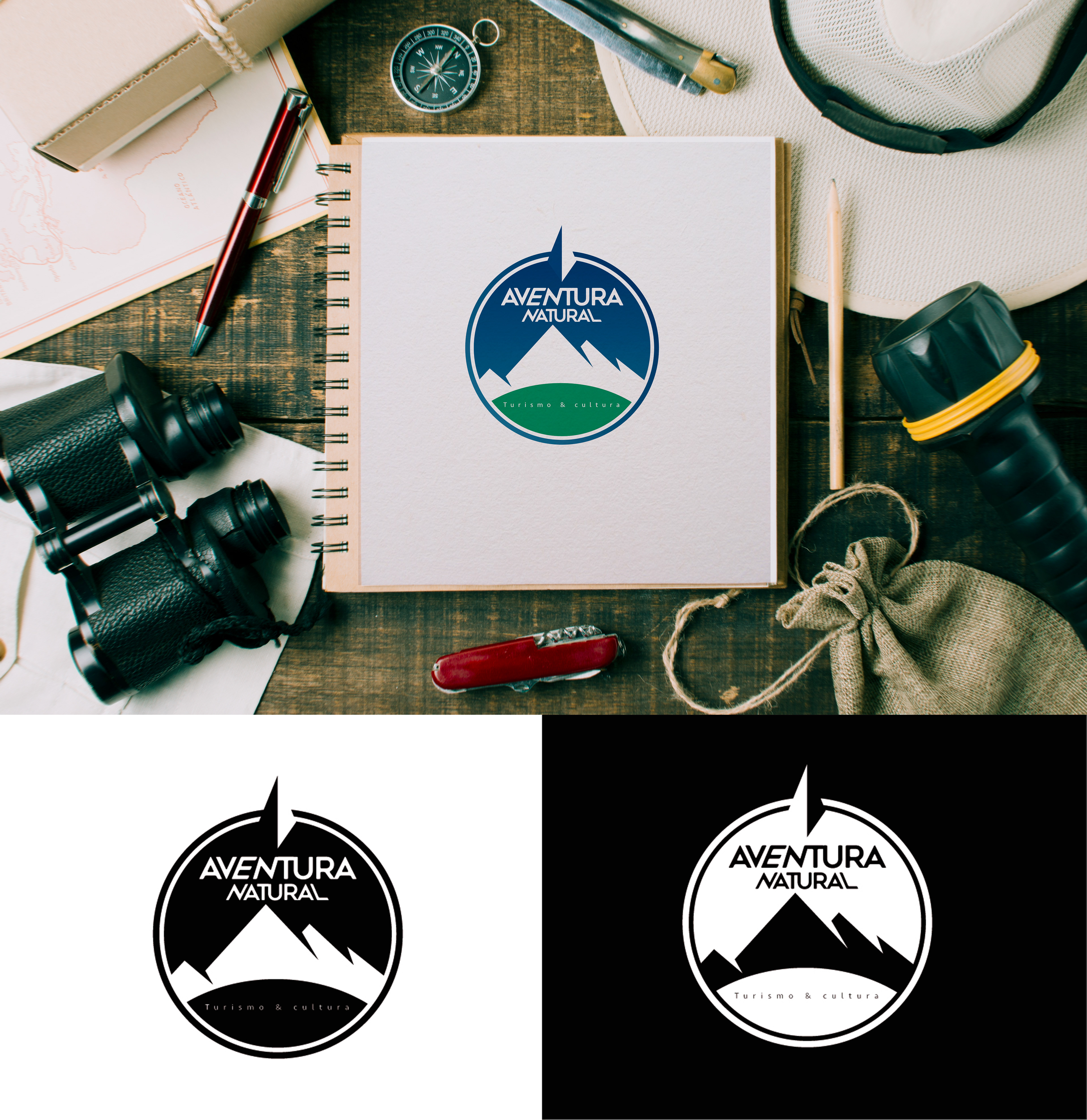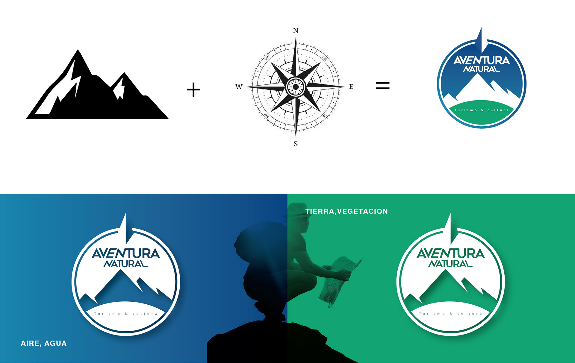 Tipografía que da sensación de comunión y contante movimiento y el norte de la brújula para indicar que son las personas correctas para llevarte a destino, acompañado de colores que dan sensación de contacto con la naturaleza con base en la confianza y la responsabilidad.