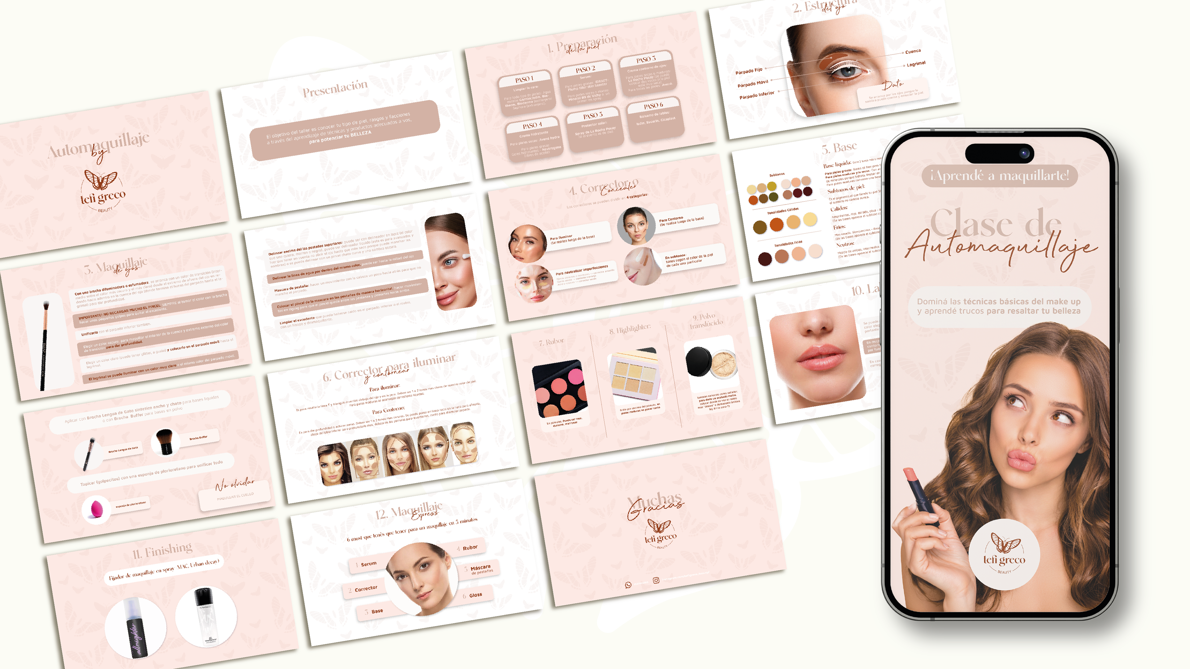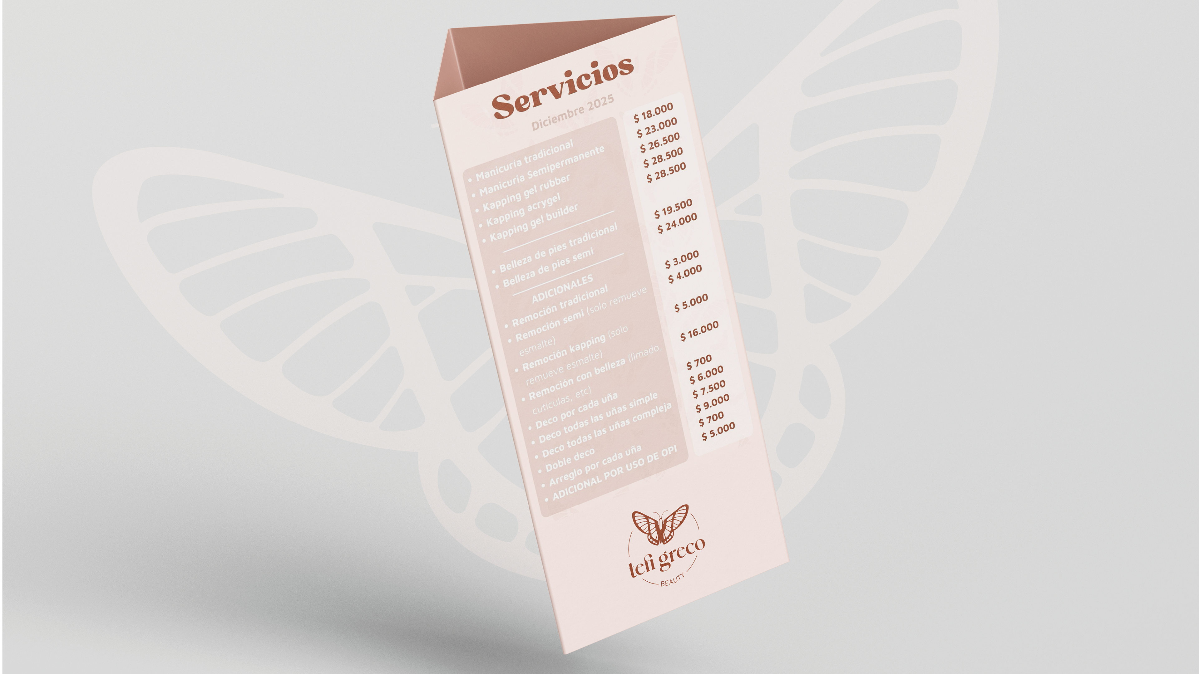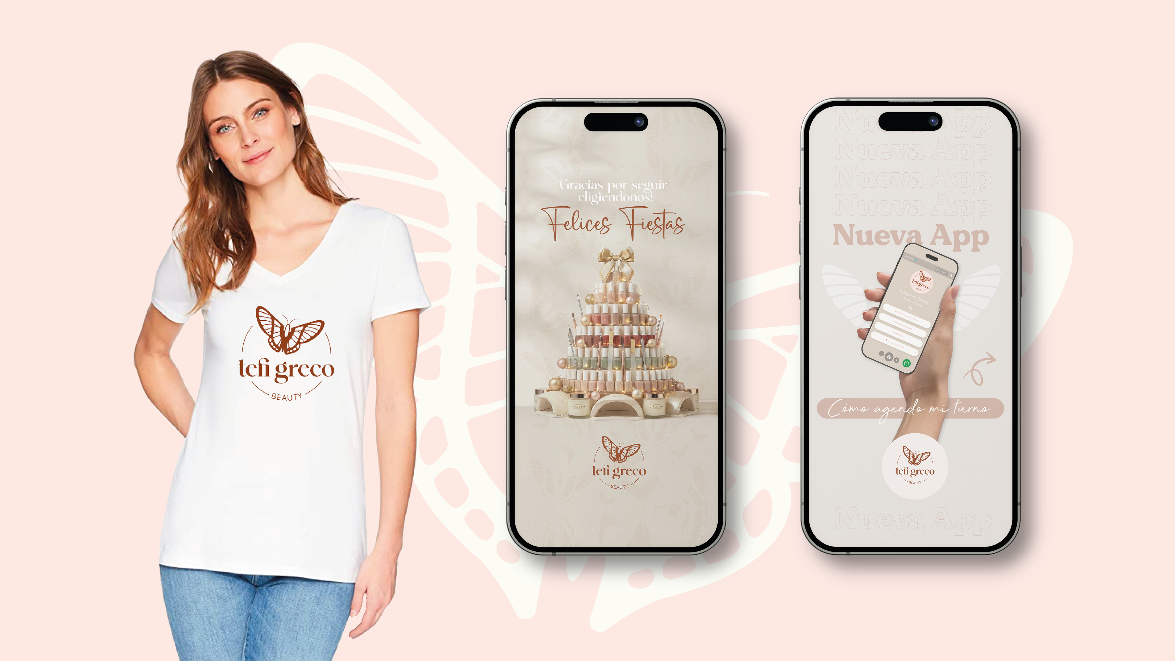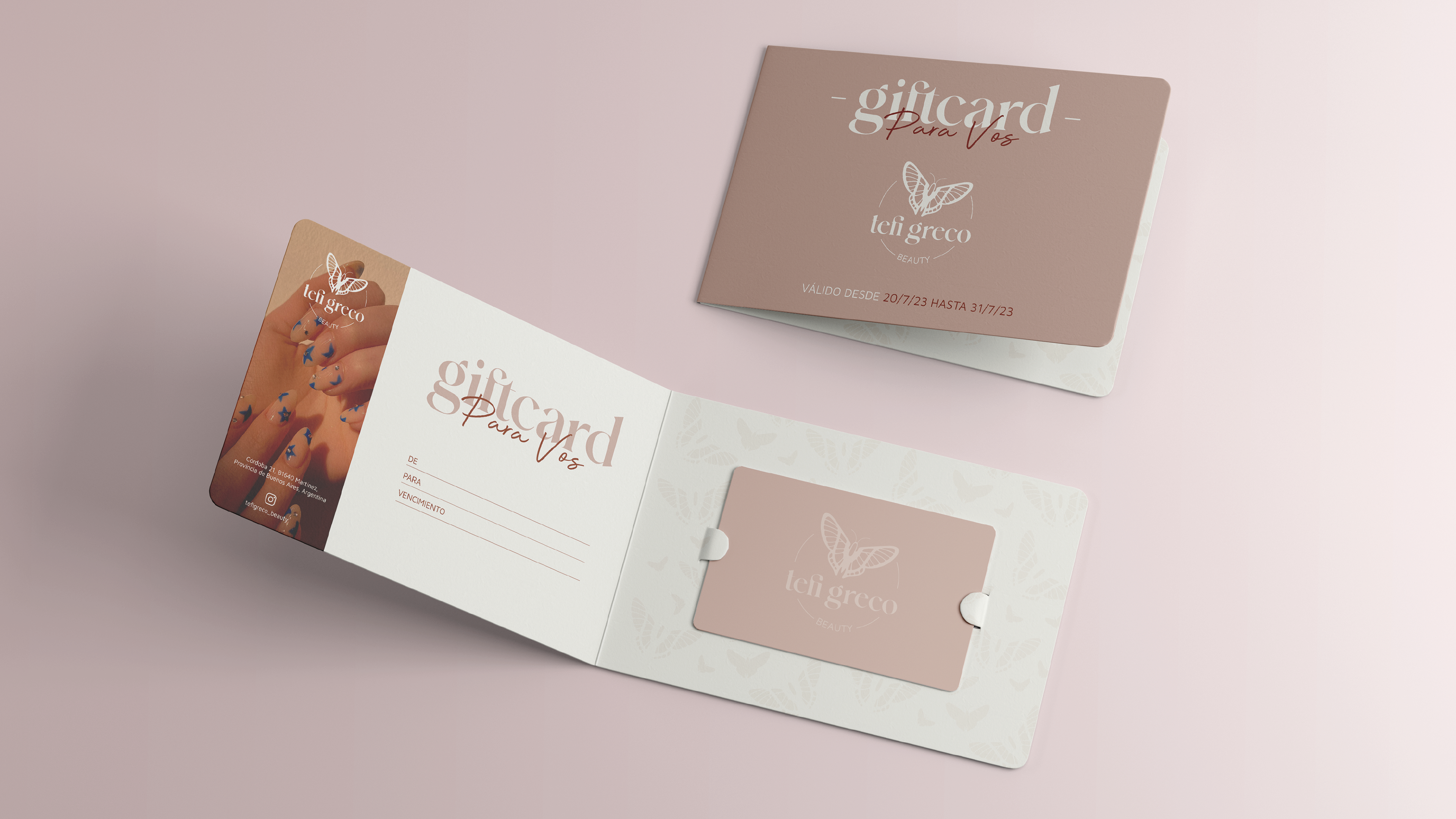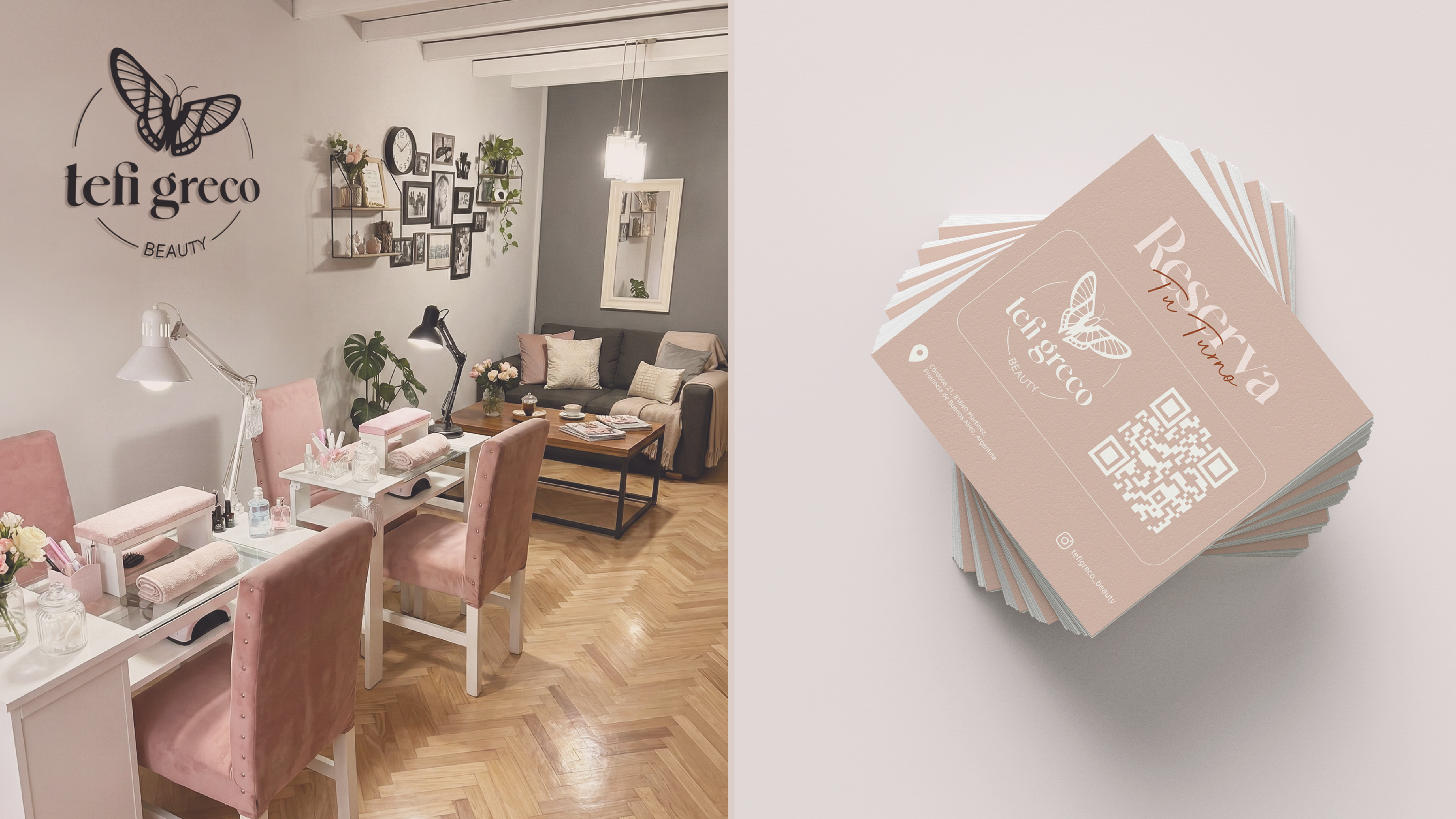 Para acompañar este concepto, la ejecución gráfica fue minuciosa. Seleccionamos tipografías cálidas y equilibradas que invitan a la cercanía. La paleta de colores, compuesta por tonos delicados, fue pensada para representar la esencia femenina y reflejar la suavidad y dedicación que caracterizan la forma de trabajar de Tefi.